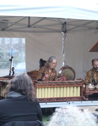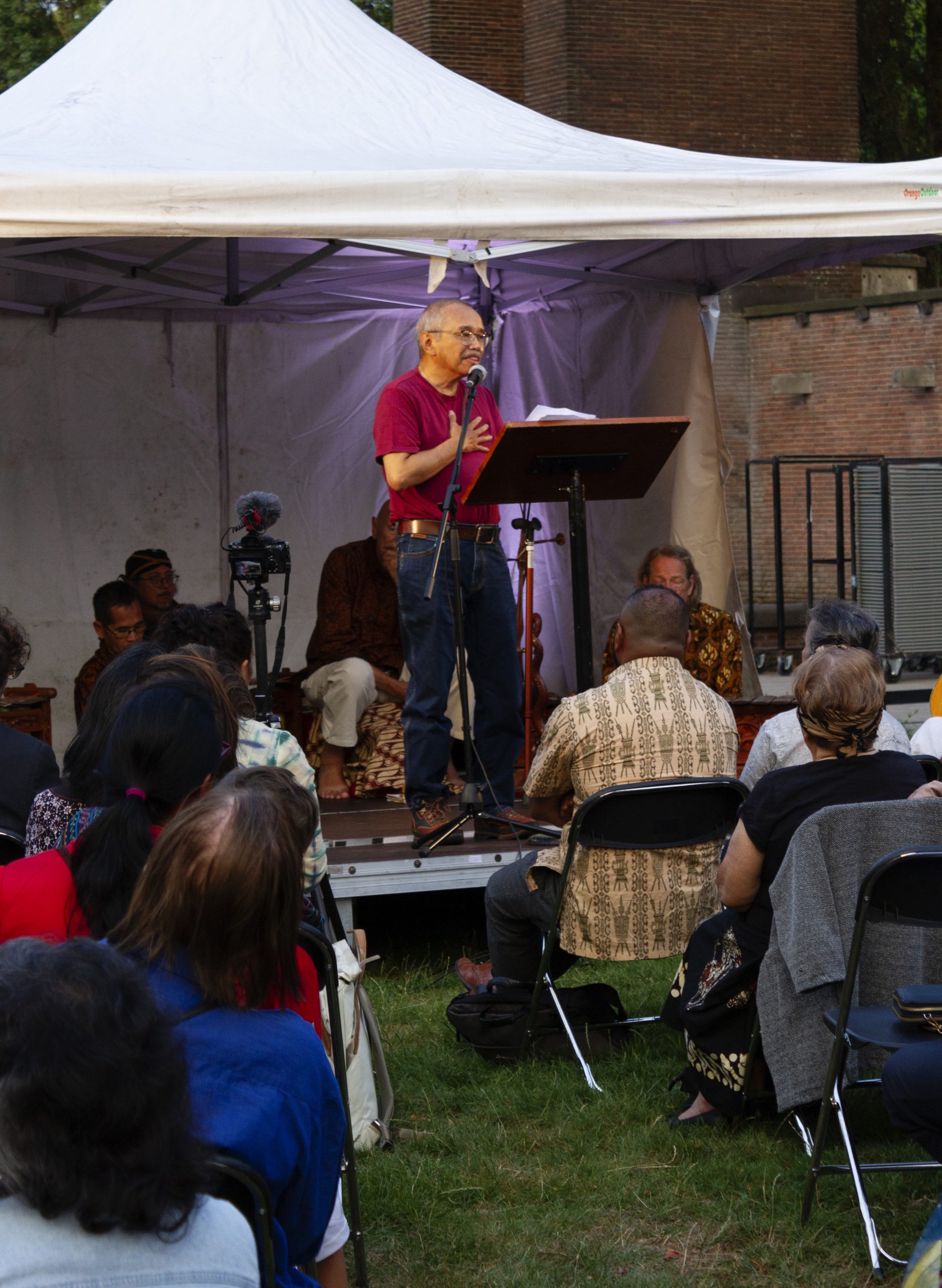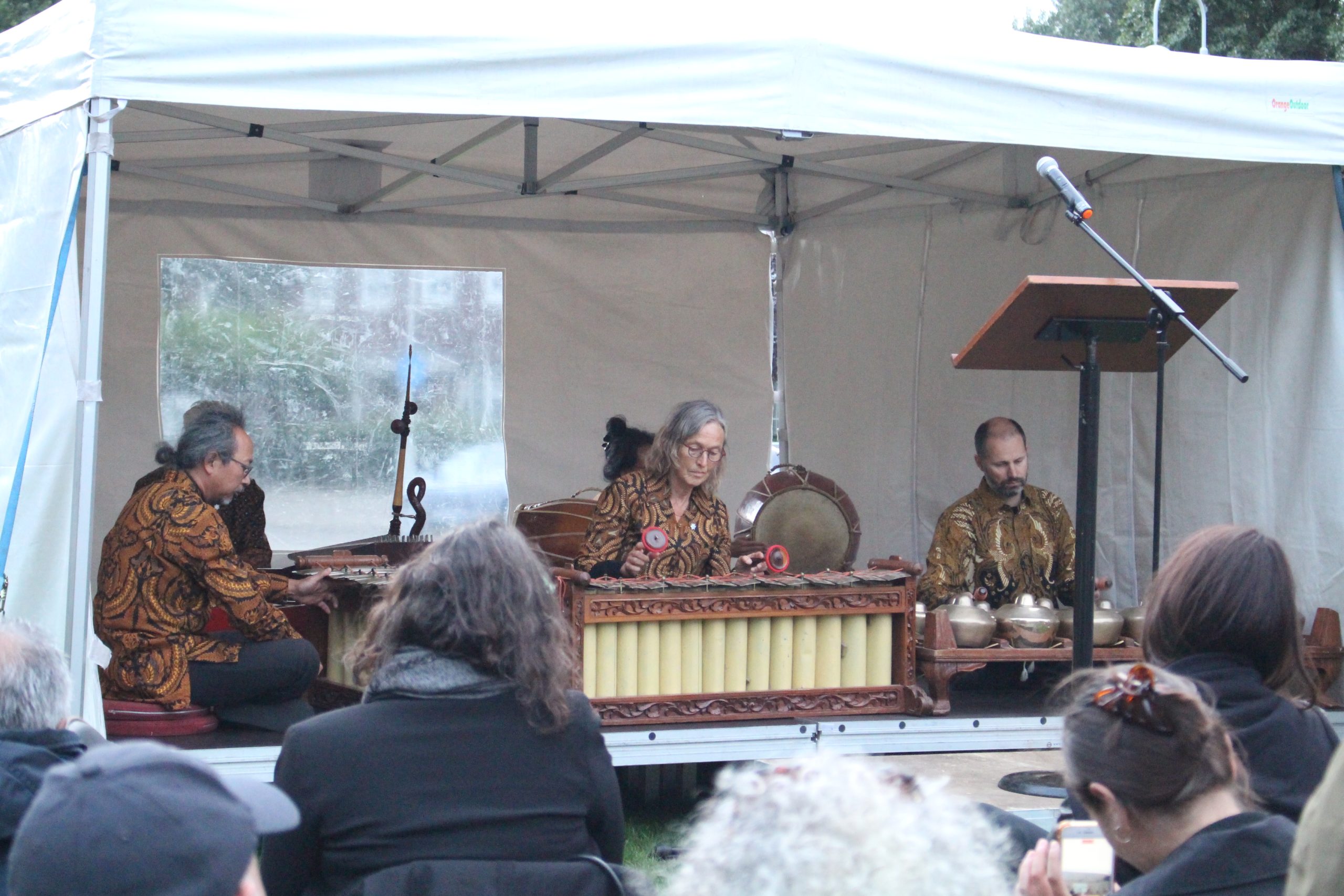 Muziek en verstilling kwamen van gamelangroep Widosari en singer-songwriter Annabel Laura, die Indonesische en Nederlandse klanken samenbracht. De kranslegging werd gedaan door o.a. Bart Vink namens de Gemeente Amsterdam en door Ron Mertens en Stéphan van Beek, als eerbetoon aan zowel Indonesische als Indische slachtoffers.