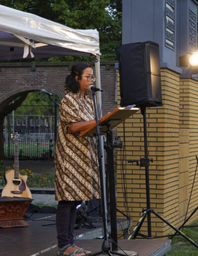 De herdenking van 2022 stond in het teken van gedeeld verleden en doorwerking in het nu. Schrijfster Dido Michielsen sprak over koloniale geschiedenis en identiteit, en Raki Ap deelde zijn persoonlijke verhaal als zoon van een Papoea-verzetsheld. Charles Goudsmit, Pieter Anthony en Wati Chaeron brachten scherpe en persoonlijke woorden over onrecht, hoop en verbondenheid.