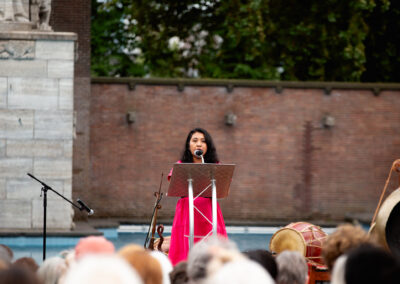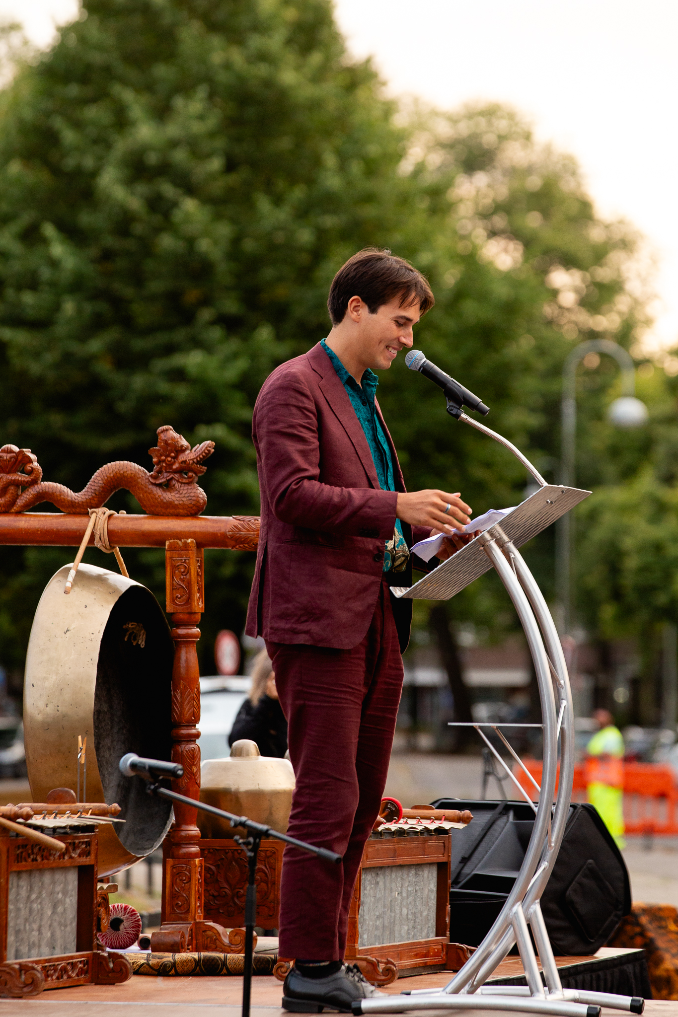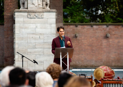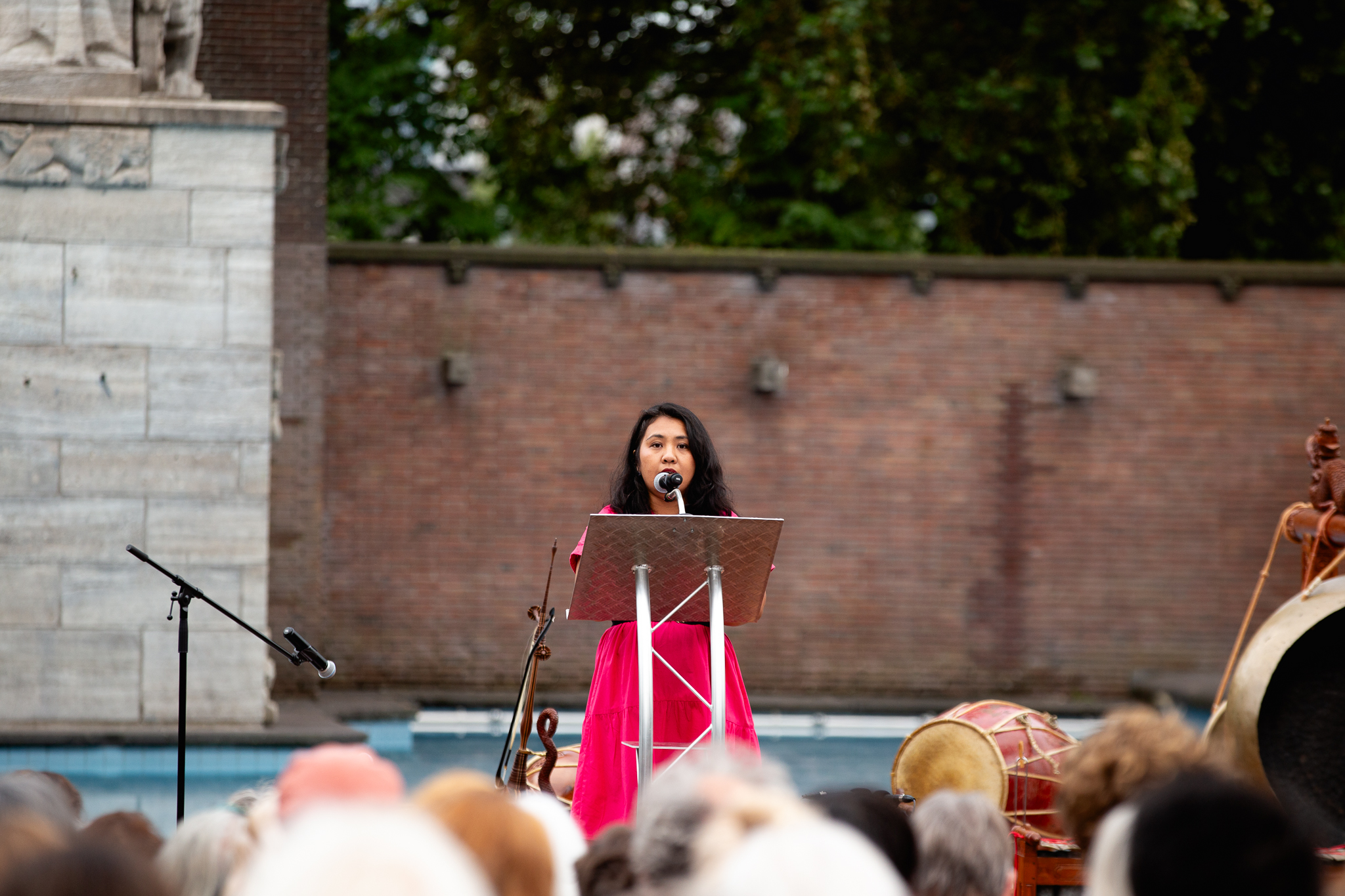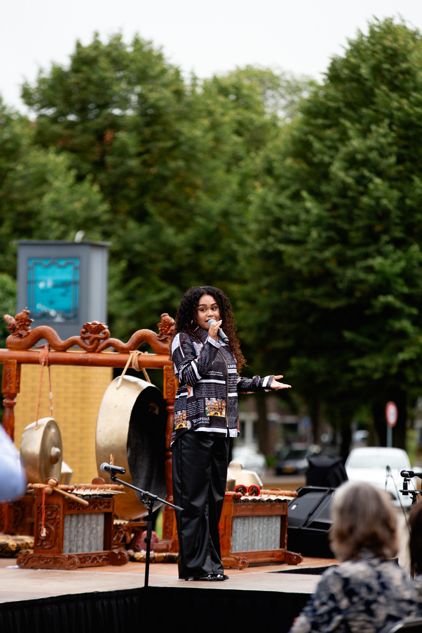 Yosina Roemajauw raakte het publiek met haar stem en gamelanensemble Widosari verbond generaties met hun klanken. De kranslegging gebeurde gezamenlijk door vier generaties, met toespraken van o.a. locoburgemeester Hester van Buren. Na afloop was er ruimte om na te praten met koffie, thee en spekkoek.
